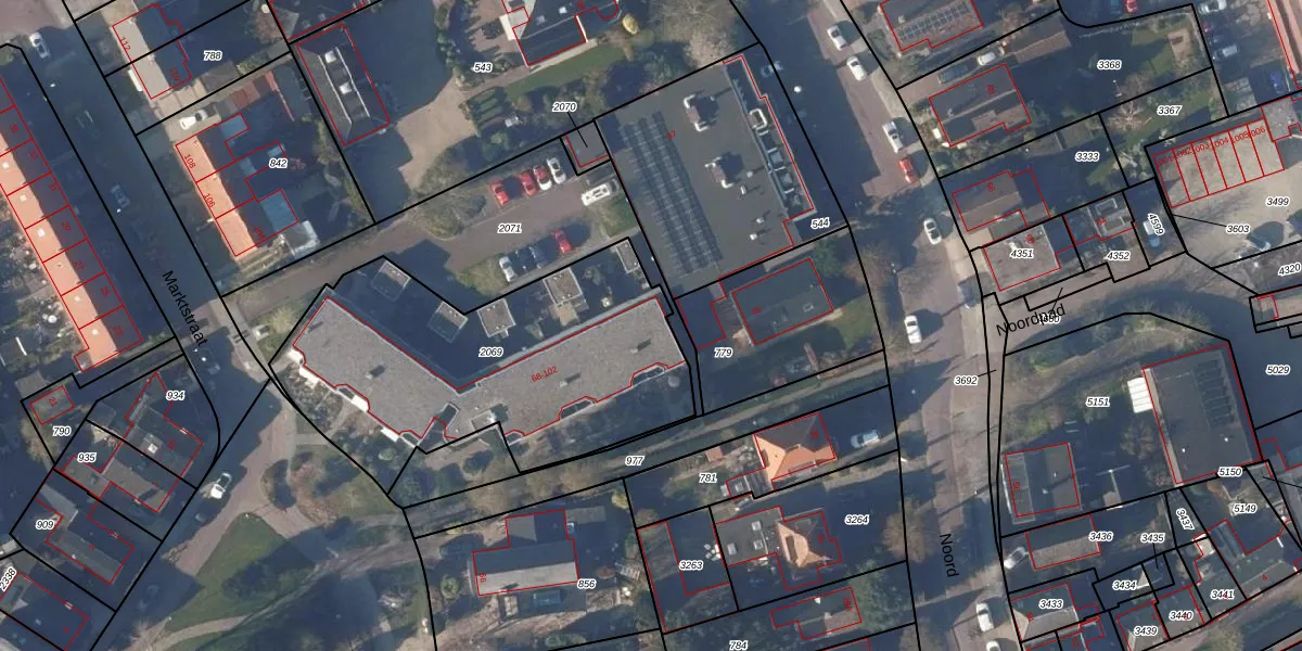 Het perceel waarop Marktstraat 78 staat heeft een oppervlakte van 1563 m². Dit is een zeer groot perceel. De perceeloppervlakte wordt geregistreerd door het Kadaster. Gedetailleerde informatie over de maten van dit perceel kunt u vinden in het rapport Kadastrale kaart met maatvoering van Marktstraat 78.