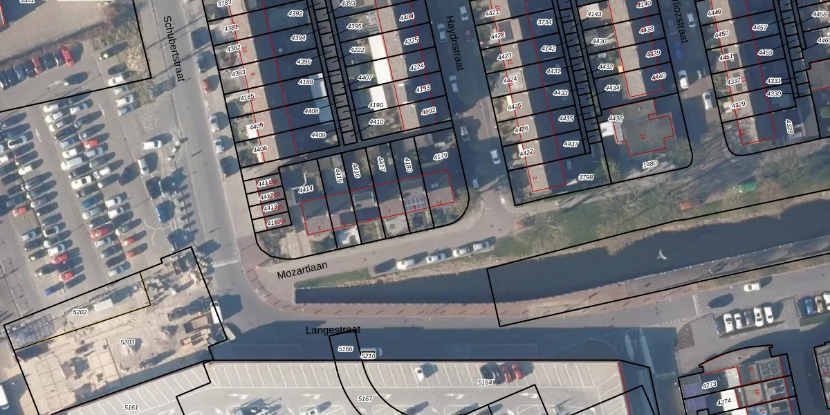 Mozartlaan 9 is gelegen op kadastraal perceel SGN00A4180. Deze kadastrale aanduiding is uniek en wordt gebruikt door het Kadaster om eigendomsrechten en andere zakelijke rechten vast te leggen. Het perceel maakt onderdeel uit van de kadastrale gemeente Schagen.