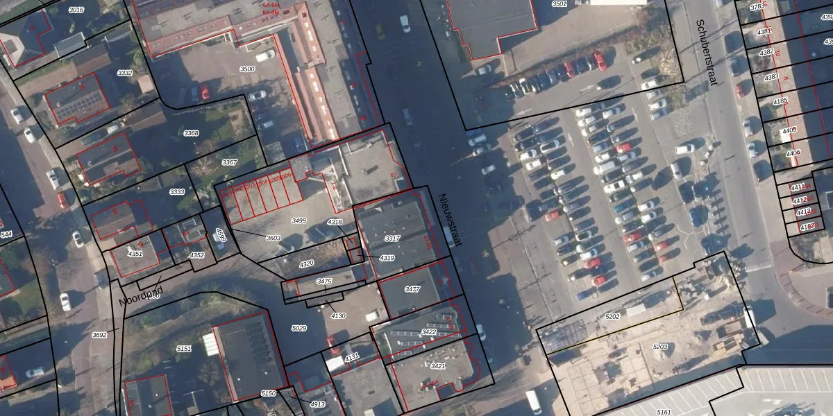Het perceel waarop Nieuwstraat 55 staat heeft een oppervlakte van 458 m². Dit is een groot perceel. De perceeloppervlakte wordt geregistreerd door het Kadaster. Gedetailleerde informatie over de maten van dit perceel kunt u vinden in het rapport Kadastrale kaart met maatvoering van Nieuwstraat 55.