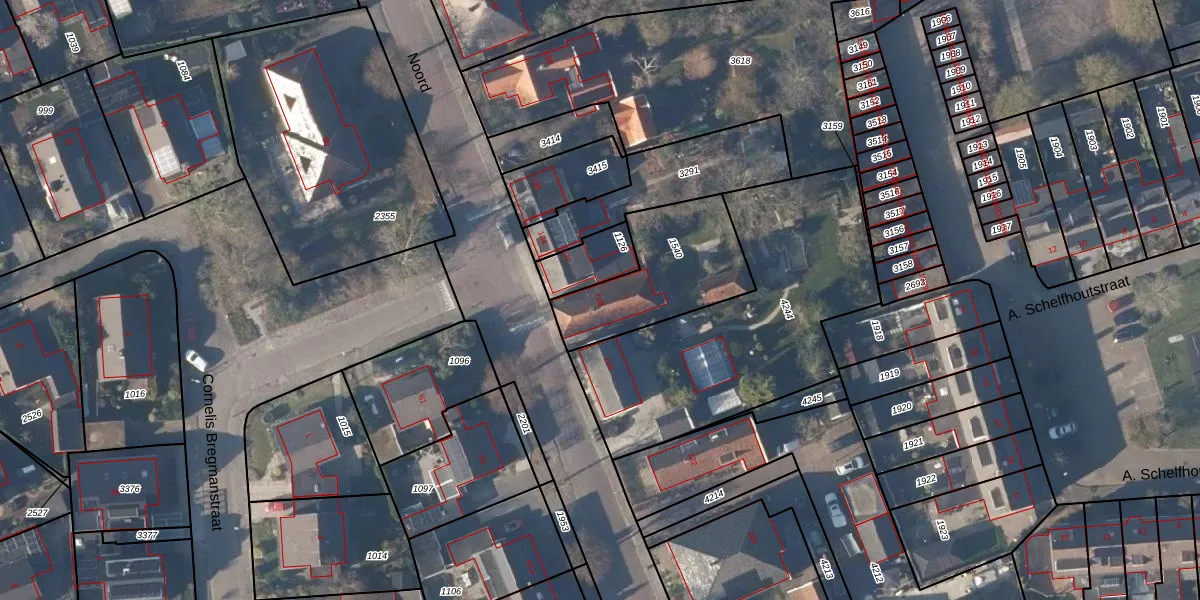 Gebruik de zoekbalk of klik op een perceel voor informatie over de adressen binnen dit perceel.