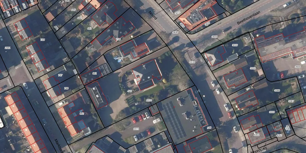 Het perceel waarop Noord 39 staat heeft een oppervlakte van 1947 m². Dit is een zeer groot perceel. De perceeloppervlakte wordt geregistreerd door het Kadaster. Gedetailleerde informatie over de maten van dit perceel kunt u vinden in het rapport Kadastrale kaart met maatvoering van Noord 39.