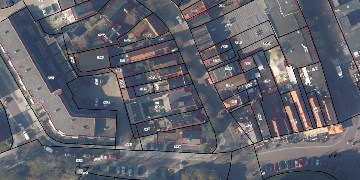 Gebruik de zoekbalk of klik op een perceel voor informatie over de adressen binnen dit perceel.