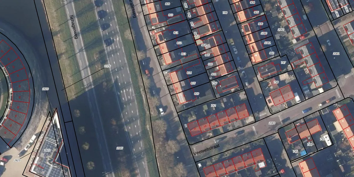 Gebruik de zoekbalk of klik op een perceel voor informatie over de adressen binnen dit perceel.