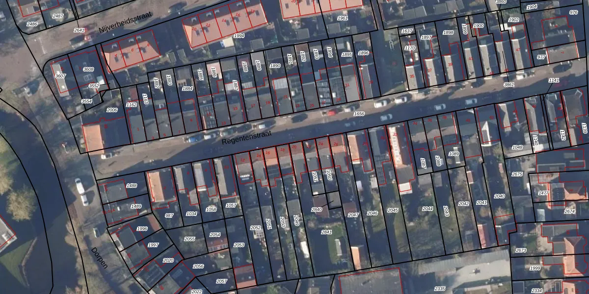 Gebruik de zoekbalk of klik op een perceel voor informatie over de adressen binnen dit perceel.