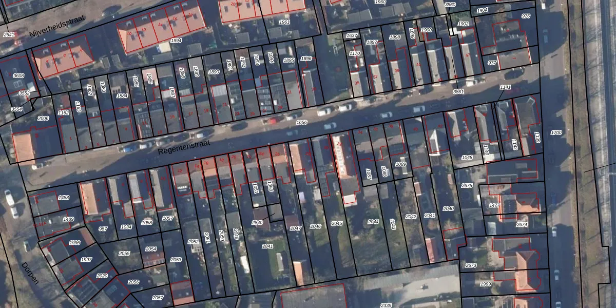 Het perceel waarop Regentenstraat 28 staat heeft een oppervlakte van 355 m². Dit is een groot perceel. De perceeloppervlakte wordt geregistreerd door het Kadaster. Gedetailleerde informatie over de maten van dit perceel kunt u vinden in het rapport Kadastrale kaart met maatvoering van Regentenstraat 28.
