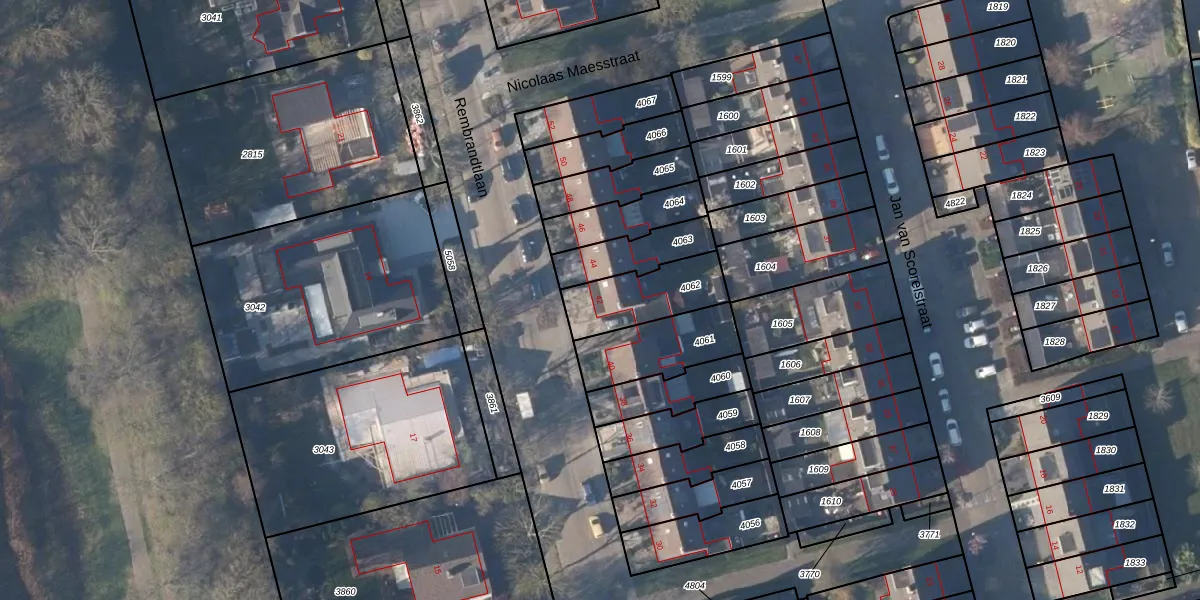 Het perceel waarop Rembrandtlaan 42 staat heeft een oppervlakte van 233 m². Dit is een middelgroot perceel. De perceeloppervlakte wordt geregistreerd door het Kadaster. Gedetailleerde informatie over de maten van dit perceel kunt u vinden in het rapport Kadastrale kaart met maatvoering van Rembrandtlaan 42.