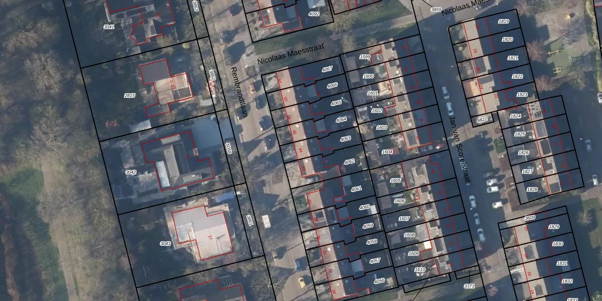 Het perceel waarop Rembrandtlaan 44 staat heeft een oppervlakte van 163 m². Dit is een middelgroot perceel. De perceeloppervlakte wordt geregistreerd door het Kadaster. Gedetailleerde informatie over de maten van dit perceel kunt u vinden in het rapport Kadastrale kaart met maatvoering van Rembrandtlaan 44.