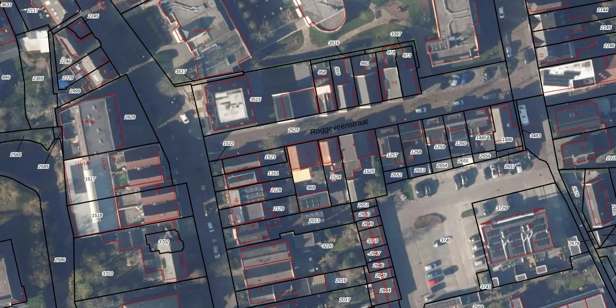 Gebruik de zoekbalk of klik op een perceel voor informatie over de adressen binnen dit perceel.
