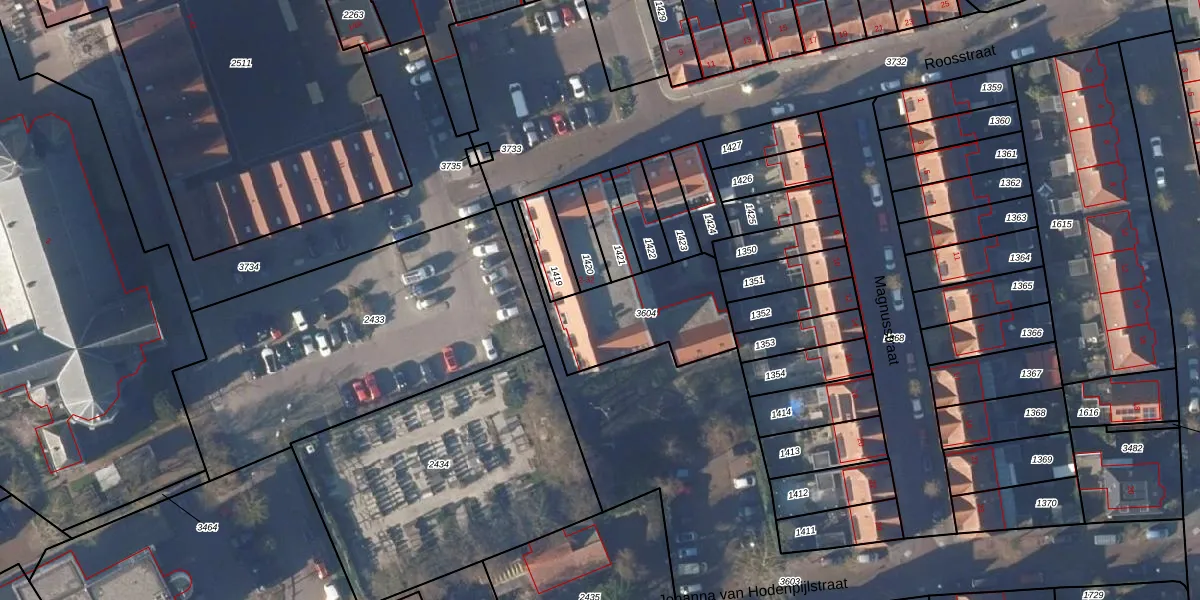 Het perceel waarop Roosstraat 16 staat heeft een oppervlakte van 443 m². Dit is een groot perceel. De perceeloppervlakte wordt geregistreerd door het Kadaster. Gedetailleerde informatie over de maten van dit perceel kunt u vinden in het rapport Kadastrale kaart met maatvoering van Roosstraat 16.