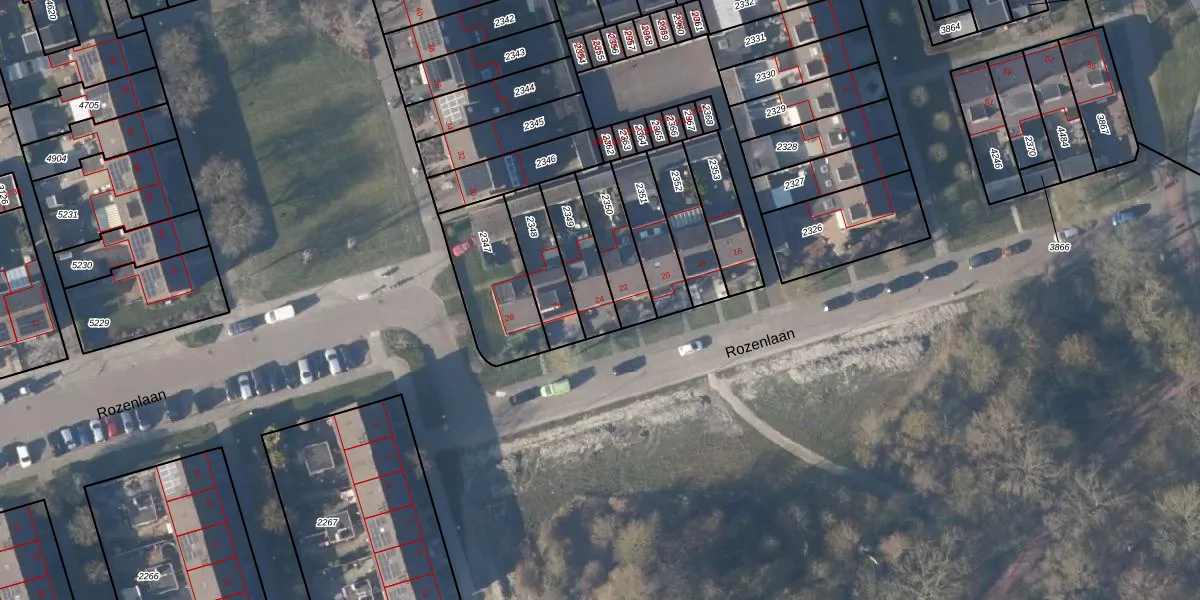 Het perceel waarop Rozenlaan 24 staat heeft een oppervlakte van 168 m². Dit is een middelgroot perceel. De perceeloppervlakte wordt geregistreerd door het Kadaster. Gedetailleerde informatie over de maten van dit perceel kunt u vinden in het rapport Kadastrale kaart met maatvoering van Rozenlaan 24.