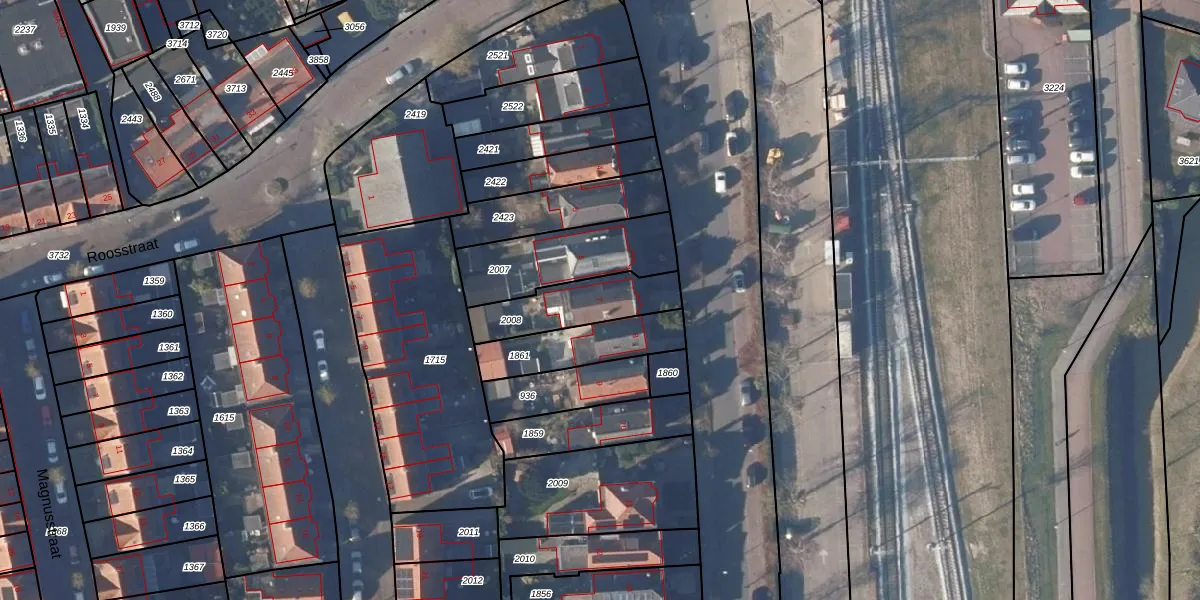 Gebruik de zoekbalk of klik op een perceel voor informatie over de adressen binnen dit perceel.