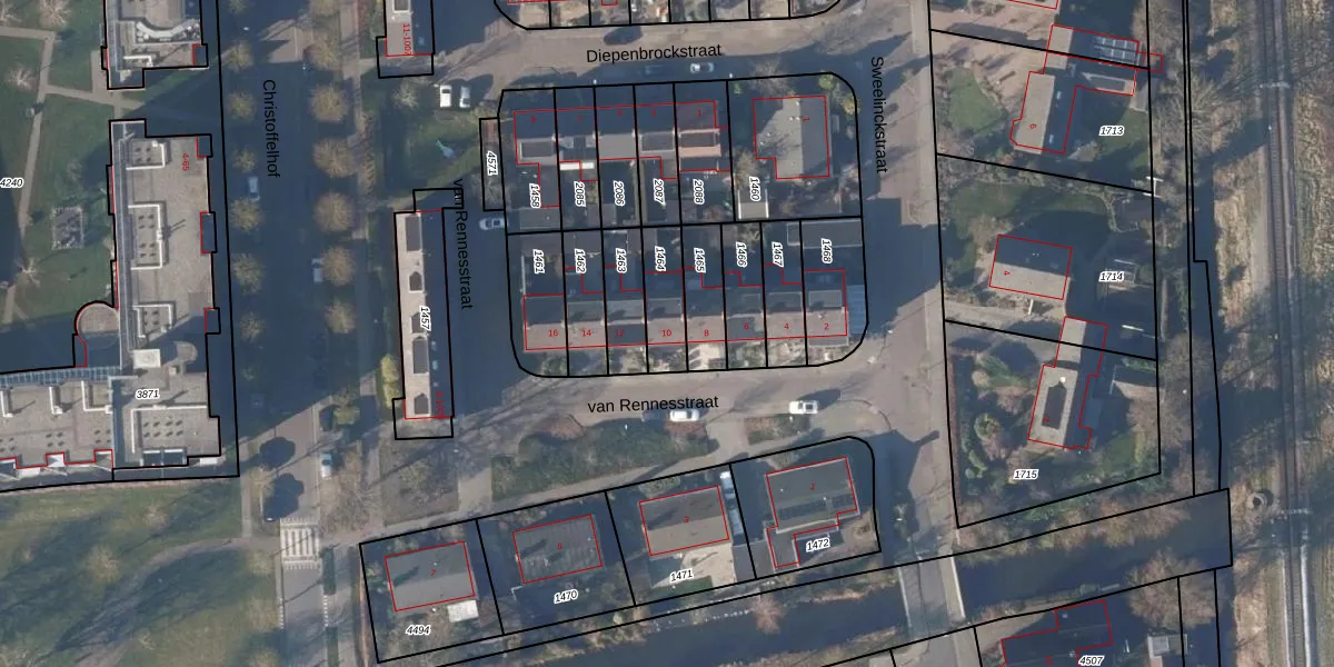 Het perceel waarop van Rennesstraat 10 staat heeft een oppervlakte van 132 m². Dit is een middelgroot perceel. De perceeloppervlakte wordt geregistreerd door het Kadaster. Gedetailleerde informatie over de maten van dit perceel kunt u vinden in het rapport Kadastrale kaart met maatvoering van van Rennesstraat 10.