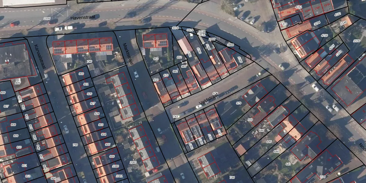Gebruik de zoekbalk of klik op een perceel voor informatie over de adressen binnen dit perceel.