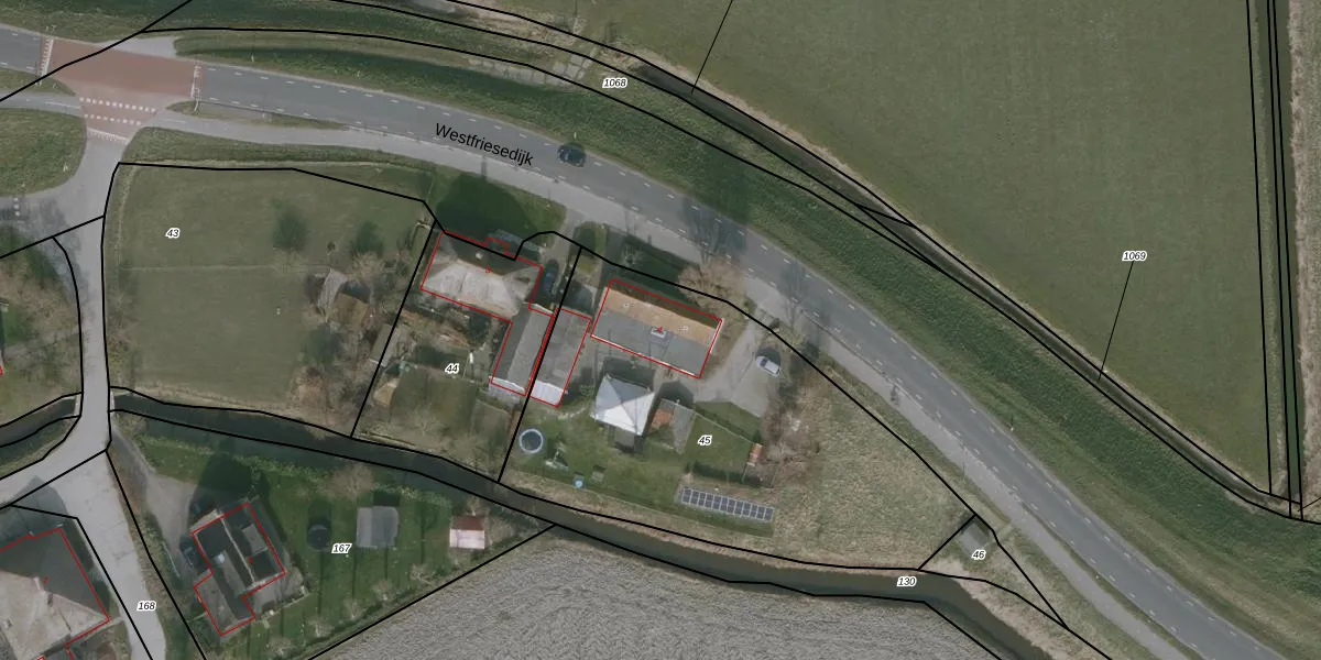 Het perceel waarop Westfriesedijk 4 staat heeft een oppervlakte van 1990 m². Dit is een zeer groot perceel. De perceeloppervlakte wordt geregistreerd door het Kadaster. Gedetailleerde informatie over de maten van dit perceel kunt u vinden in het rapport Kadastrale kaart met maatvoering van Westfriesedijk 4.
