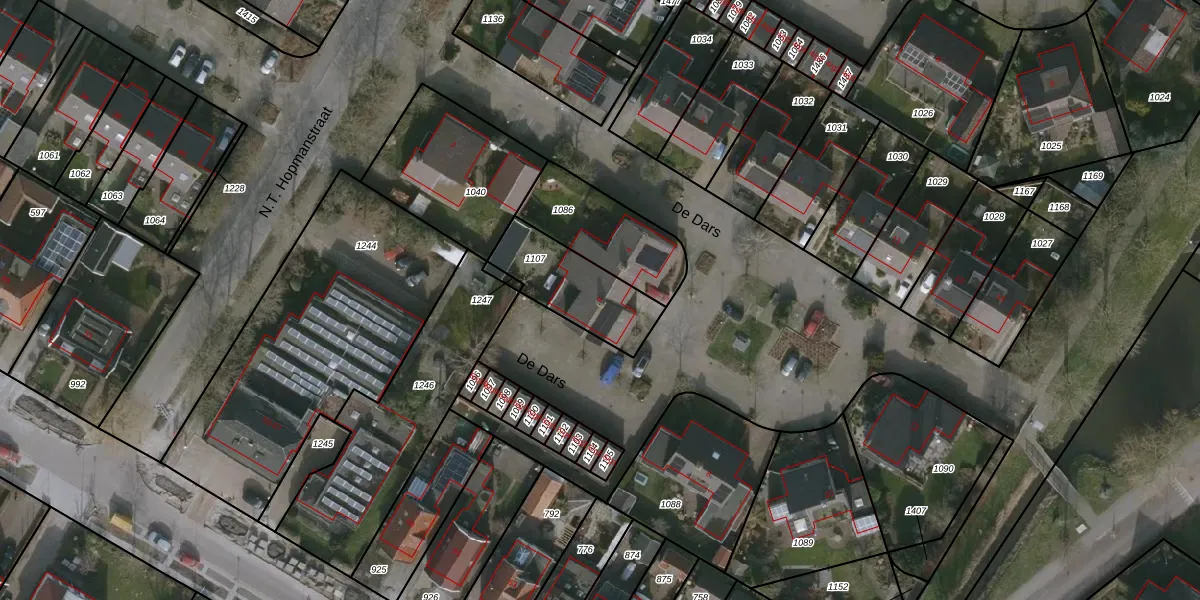 Het perceel waarop De Dars 6 staat heeft een oppervlakte van 287 m². Dit is een middelgroot perceel. De perceeloppervlakte wordt geregistreerd door het Kadaster. Gedetailleerde informatie over de maten van dit perceel kunt u vinden in het rapport Kadastrale kaart met maatvoering van De Dars 6.