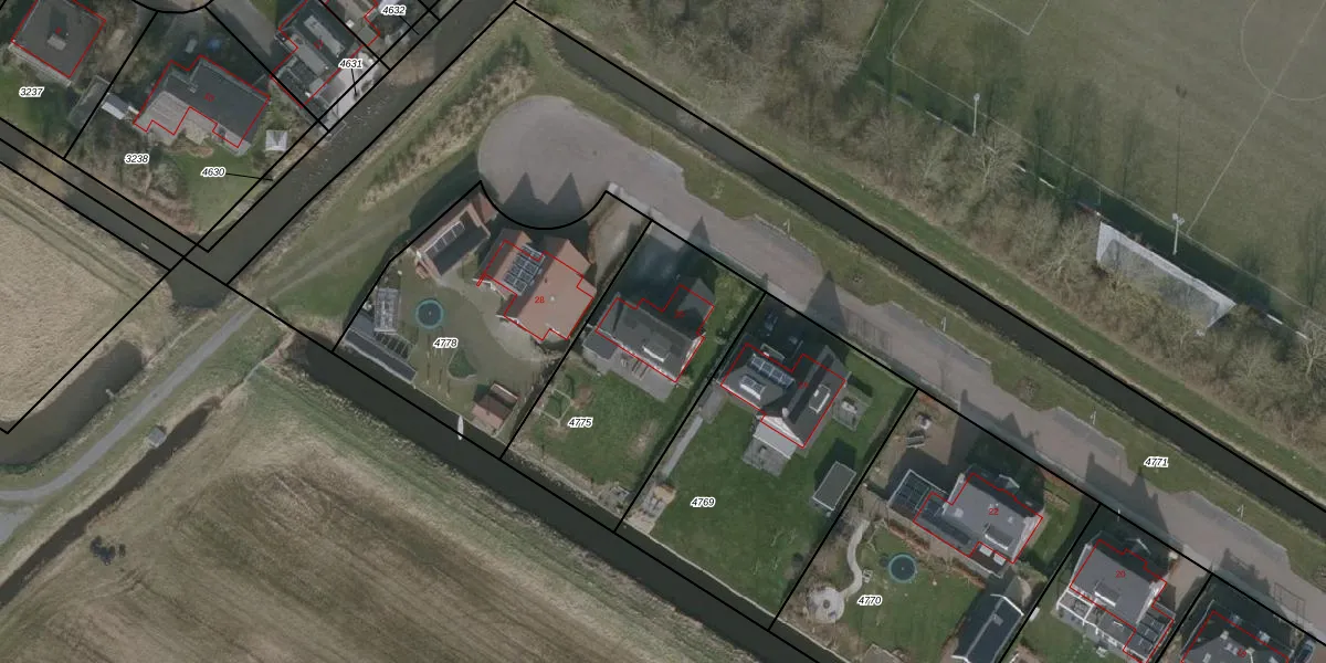 Het perceel waarop P. Ottstraat 26 staat heeft een oppervlakte van 875 m². Dit is een groot perceel. De perceeloppervlakte wordt geregistreerd door het Kadaster. Gedetailleerde informatie over de maten van dit perceel kunt u vinden in het rapport Kadastrale kaart met maatvoering van P. Ottstraat 26.