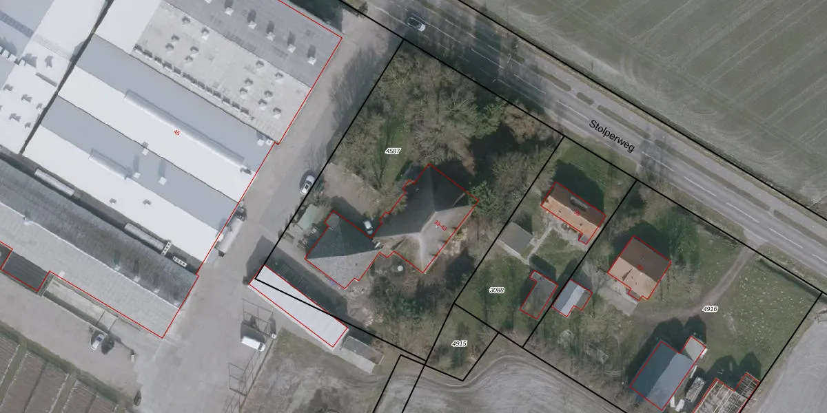 Stolperweg 43 is gelegen op kadastraal perceel ZPE00D4587. Deze kadastrale aanduiding is uniek en wordt gebruikt door het Kadaster om eigendomsrechten en andere zakelijke rechten vast te leggen. Het perceel maakt onderdeel uit van de kadastrale gemeente Zijpe.