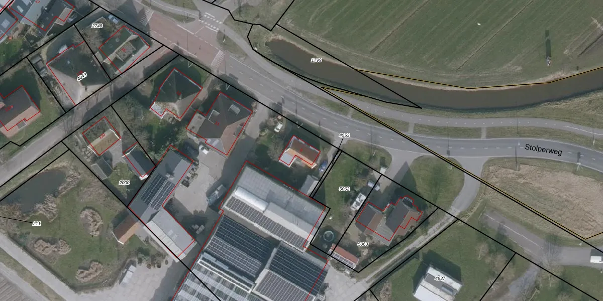 Het perceel waarop Stolperweg 9 staat heeft een oppervlakte van 2,2 ha. Dit is een zeer groot perceel. De perceeloppervlakte wordt geregistreerd door het Kadaster. Gedetailleerde informatie over de maten van dit perceel kunt u vinden in het rapport Kadastrale kaart met maatvoering van Stolperweg 9.