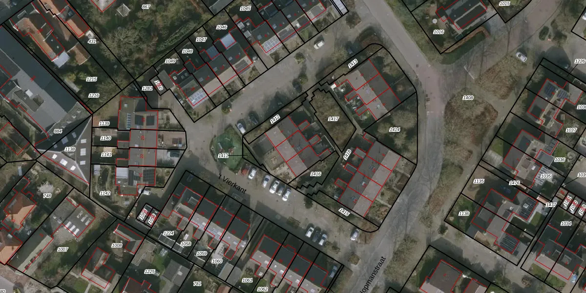 Het perceel waarop 't Vierkant 3 staat heeft een oppervlakte van 1600 m². Dit is een zeer groot perceel. De perceeloppervlakte wordt geregistreerd door het Kadaster. Gedetailleerde informatie over de maten van dit perceel kunt u vinden in het rapport Kadastrale kaart met maatvoering van 't Vierkant 3.