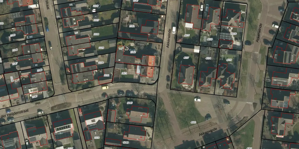 Gebruik de zoekbalk of klik op een perceel voor informatie over de adressen binnen dit perceel.