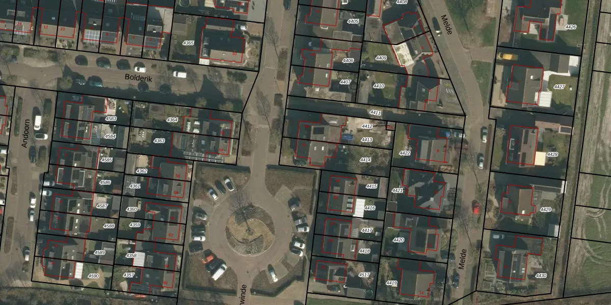 Gebruik de zoekbalk of klik op een perceel voor informatie over de adressen binnen dit perceel.