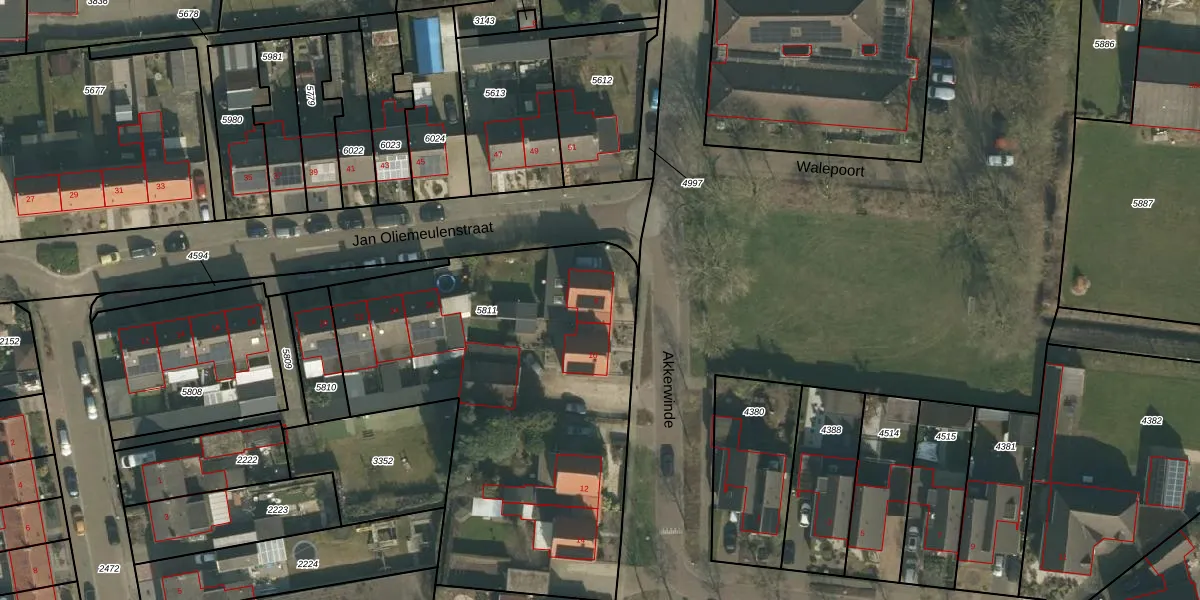 Het perceel waarop Akkerwinde 8 staat heeft een oppervlakte van 2142 m². Dit is een zeer groot perceel. De perceeloppervlakte wordt geregistreerd door het Kadaster. Gedetailleerde informatie over de maten van dit perceel kunt u vinden in het rapport Kadastrale kaart met maatvoering van Akkerwinde 8.