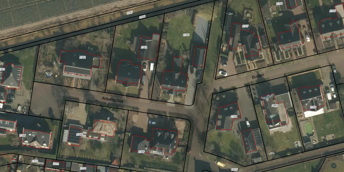 Arkenschot 13 is gelegen op kadastraal perceel SCH03B2760. Deze kadastrale aanduiding is uniek en wordt gebruikt door het Kadaster om eigendomsrechten en andere zakelijke rechten vast te leggen. Het perceel maakt onderdeel uit van de kadastrale gemeente Schaijk.