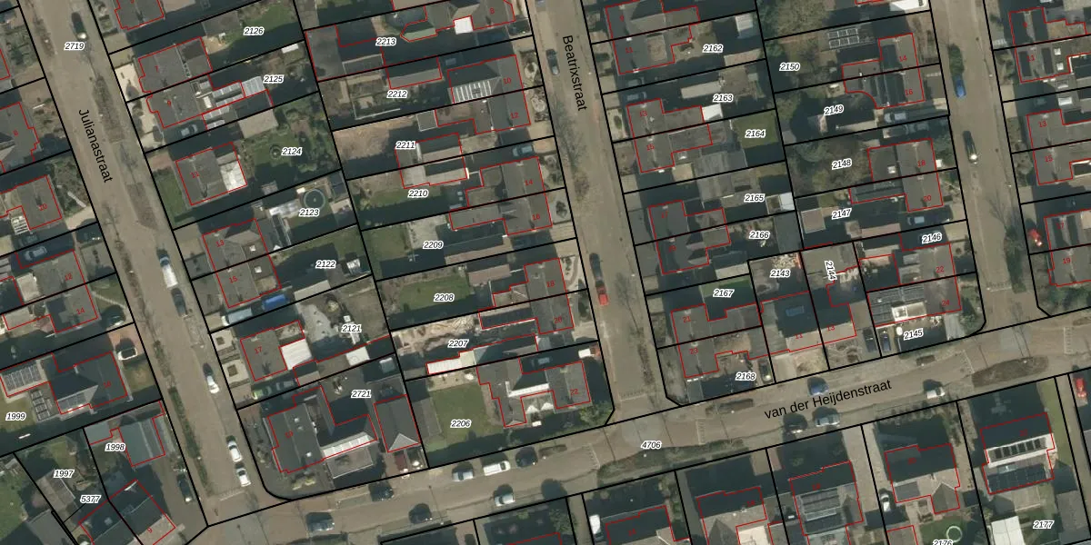 Beatrixstraat 18 is gelegen op kadastraal perceel SCH03C2208. Deze kadastrale aanduiding is uniek en wordt gebruikt door het Kadaster om eigendomsrechten en andere zakelijke rechten vast te leggen. Het perceel maakt onderdeel uit van de kadastrale gemeente Schaijk.