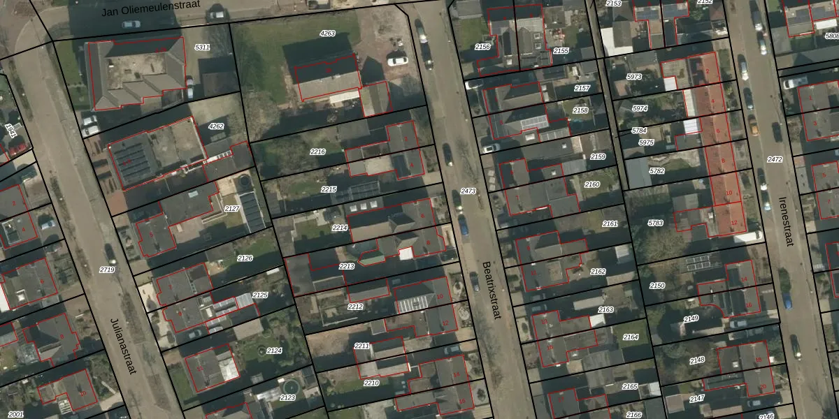 Beatrixstraat 6 is gelegen op kadastraal perceel SCH03C2214. Deze kadastrale aanduiding is uniek en wordt gebruikt door het Kadaster om eigendomsrechten en andere zakelijke rechten vast te leggen. Het perceel maakt onderdeel uit van de kadastrale gemeente Schaijk.