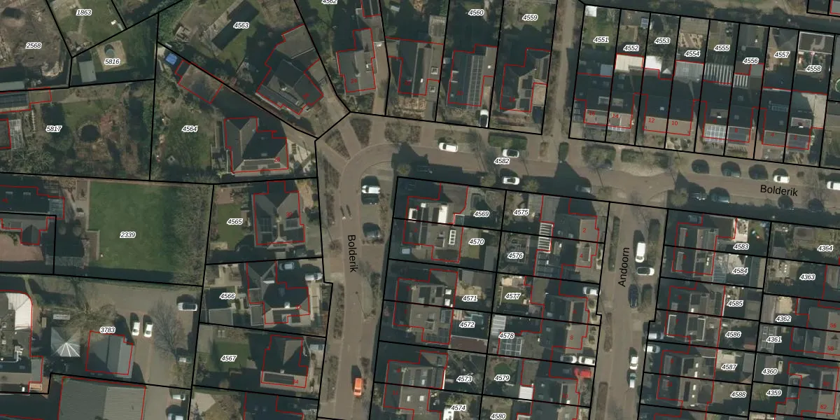 Het perceel waarop Bolderik 1 staat heeft een oppervlakte van 256 m². Dit is een middelgroot perceel. De perceeloppervlakte wordt geregistreerd door het Kadaster. Gedetailleerde informatie over de maten van dit perceel kunt u vinden in het rapport Kadastrale kaart met maatvoering van Bolderik 1.