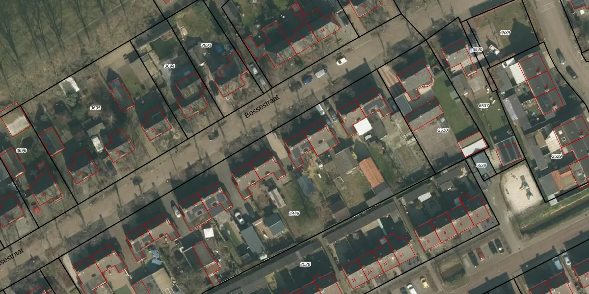 Bossestraat 27 is gelegen op kadastraal perceel SCH03C2449. Deze kadastrale aanduiding is uniek en wordt gebruikt door het Kadaster om eigendomsrechten en andere zakelijke rechten vast te leggen. Het perceel maakt onderdeel uit van de kadastrale gemeente Schaijk.