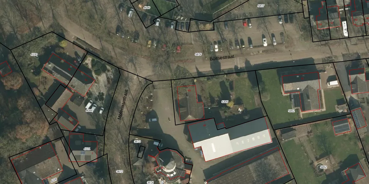 Het perceel waarop Bossestraat 63 staat heeft een oppervlakte van 1236 m². Dit is een zeer groot perceel. De perceeloppervlakte wordt geregistreerd door het Kadaster. Gedetailleerde informatie over de maten van dit perceel kunt u vinden in het rapport Kadastrale kaart met maatvoering van Bossestraat 63.