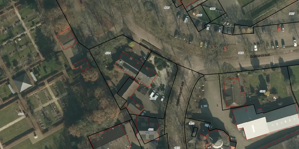 Bossestraat 67 is gelegen op kadastraal perceel SCH03C4099. Deze kadastrale aanduiding is uniek en wordt gebruikt door het Kadaster om eigendomsrechten en andere zakelijke rechten vast te leggen. Het perceel maakt onderdeel uit van de kadastrale gemeente Schaijk.