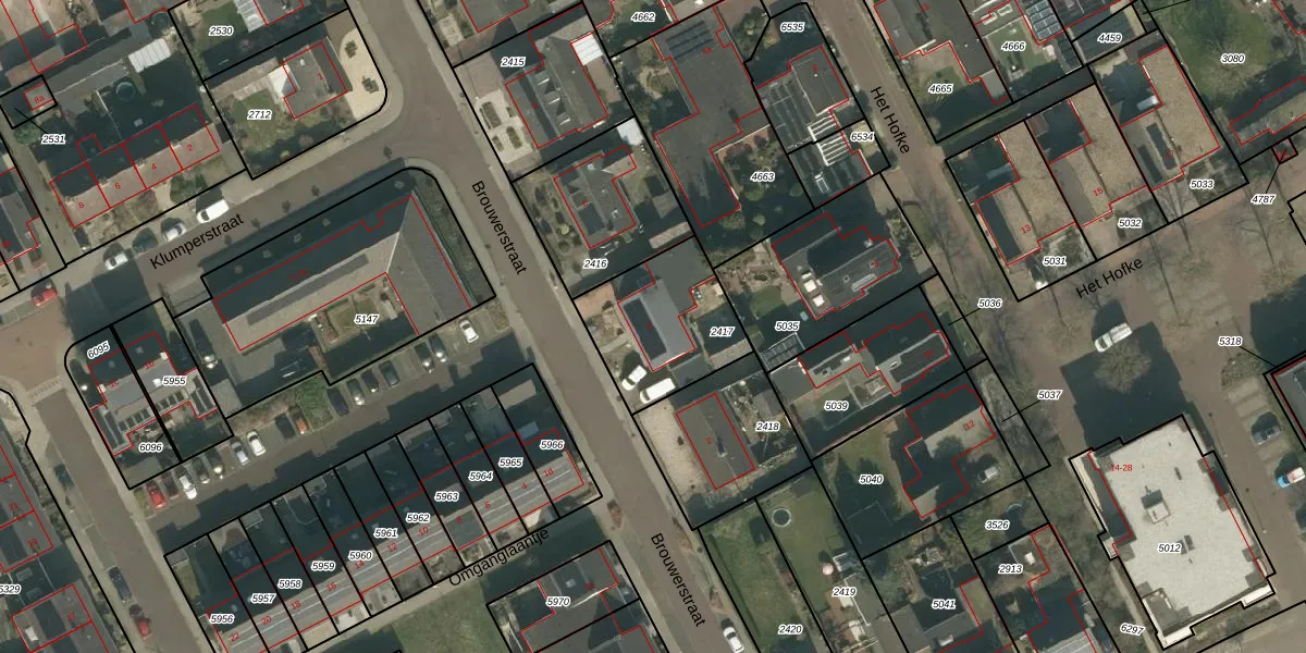 Gebruik de zoekbalk of klik op een perceel voor informatie over de adressen binnen dit perceel.