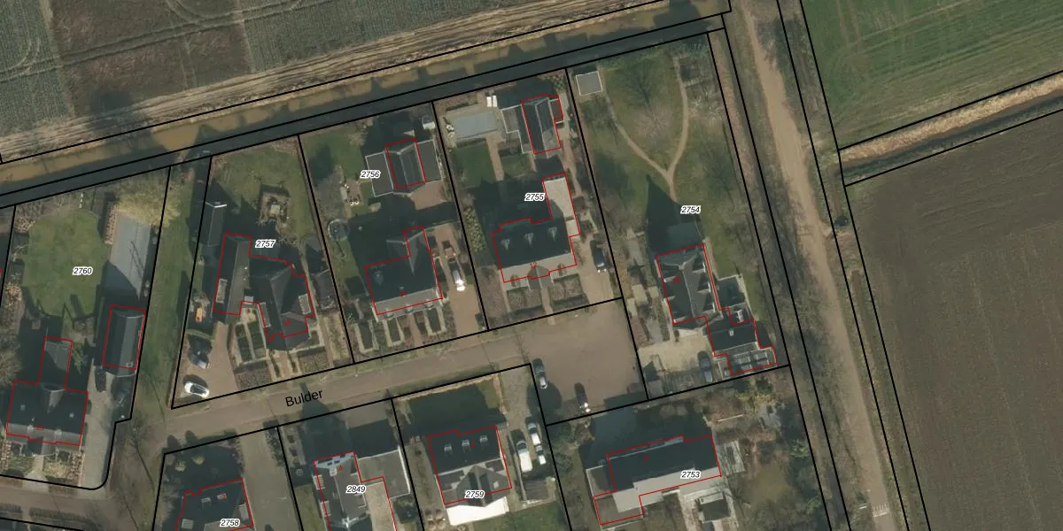 Het perceel waarop Bulder 12 staat heeft een oppervlakte van 1157 m². Dit is een zeer groot perceel. De perceeloppervlakte wordt geregistreerd door het Kadaster. Gedetailleerde informatie over de maten van dit perceel kunt u vinden in het rapport Kadastrale kaart met maatvoering van Bulder 12.
