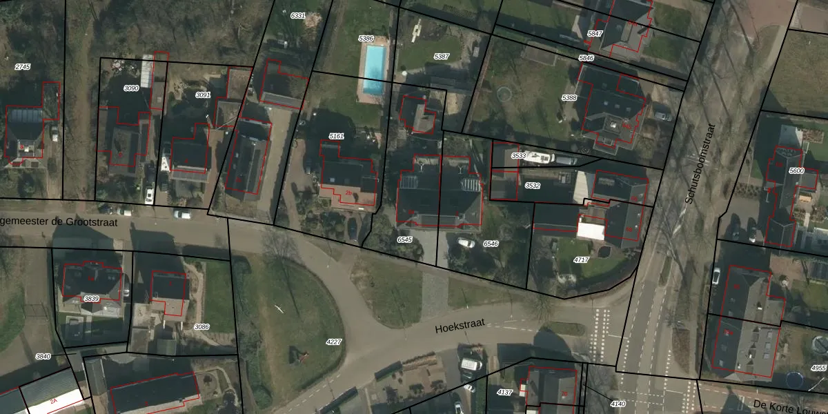 Burgemeester de Grootstraat 2-a is gelegen op kadastraal perceel SCH03C6545. Deze kadastrale aanduiding is uniek en wordt gebruikt door het Kadaster om eigendomsrechten en andere zakelijke rechten vast te leggen. Het perceel maakt onderdeel uit van de kadastrale gemeente Schaijk.