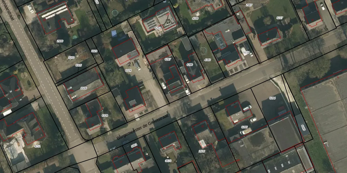 Burgemeester de Grootstraat 20 is gelegen op kadastraal perceel SCH03C6287. Deze kadastrale aanduiding is uniek en wordt gebruikt door het Kadaster om eigendomsrechten en andere zakelijke rechten vast te leggen. Het perceel maakt onderdeel uit van de kadastrale gemeente Schaijk.