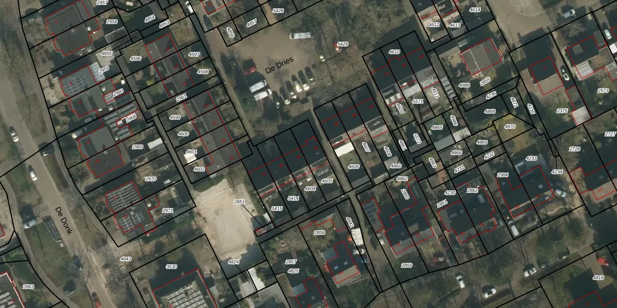Het perceel waarop De Dries 34 staat heeft een oppervlakte van 171 m². Dit is een middelgroot perceel. De perceeloppervlakte wordt geregistreerd door het Kadaster. Gedetailleerde informatie over de maten van dit perceel kunt u vinden in het rapport Kadastrale kaart met maatvoering van De Dries 34.