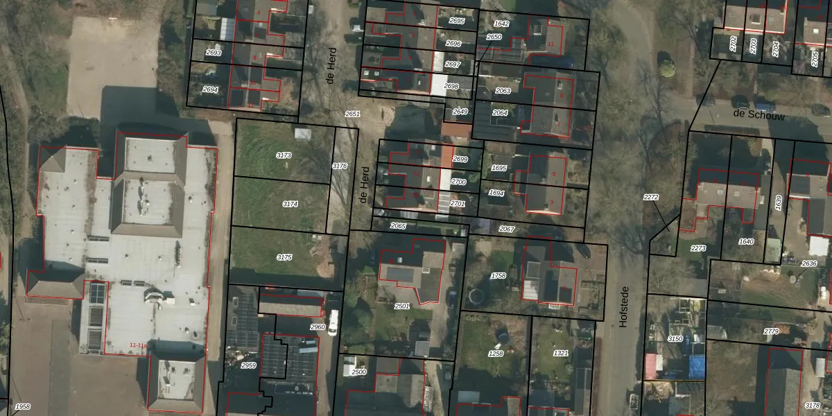 Het perceel waarop de Herd 13 staat heeft een oppervlakte van 140 m². Dit is een middelgroot perceel. De perceeloppervlakte wordt geregistreerd door het Kadaster. Gedetailleerde informatie over de maten van dit perceel kunt u vinden in het rapport Kadastrale kaart met maatvoering van de Herd 13.
