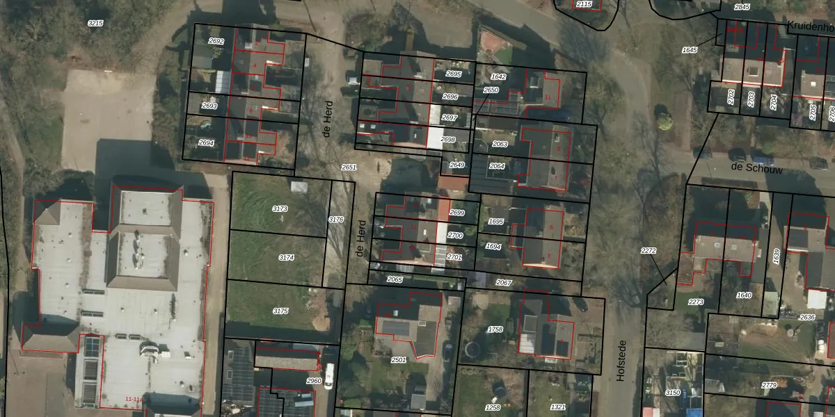 Het perceel waarop de Herd 9 staat heeft een oppervlakte van 140 m². Dit is een middelgroot perceel. De perceeloppervlakte wordt geregistreerd door het Kadaster. Gedetailleerde informatie over de maten van dit perceel kunt u vinden in het rapport Kadastrale kaart met maatvoering van de Herd 9.