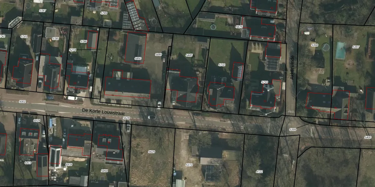 Het perceel waarop De Korte Louwstraat 17 staat heeft een oppervlakte van 805 m². Dit is een groot perceel. De perceeloppervlakte wordt geregistreerd door het Kadaster. Gedetailleerde informatie over de maten van dit perceel kunt u vinden in het rapport Kadastrale kaart met maatvoering van De Korte Louwstraat 17.