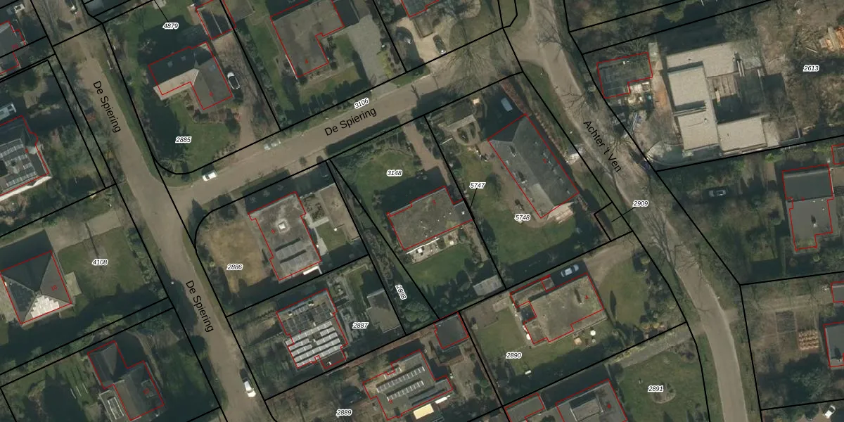 Het perceel waarop De Spiering 3 staat heeft een oppervlakte van 970 m². Dit is een groot perceel. De perceeloppervlakte wordt geregistreerd door het Kadaster. Gedetailleerde informatie over de maten van dit perceel kunt u vinden in het rapport Kadastrale kaart met maatvoering van De Spiering 3.