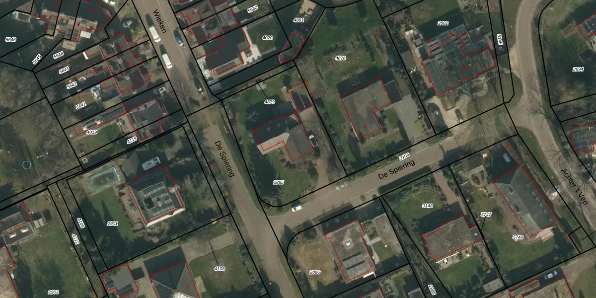 Het perceel waarop De Spiering 6 staat heeft een oppervlakte van 1171 m². Dit is een zeer groot perceel. De perceeloppervlakte wordt geregistreerd door het Kadaster. Gedetailleerde informatie over de maten van dit perceel kunt u vinden in het rapport Kadastrale kaart met maatvoering van De Spiering 6.