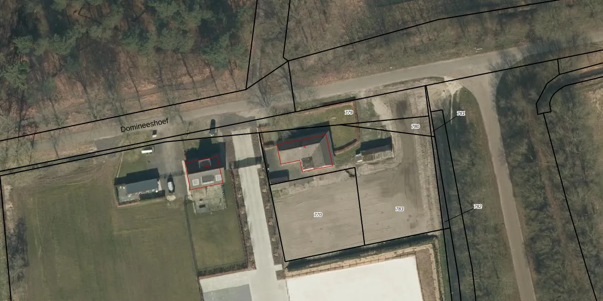 Domineeshoef 4 is gelegen op kadastraal perceel SCH03H783. Deze kadastrale aanduiding is uniek en wordt gebruikt door het Kadaster om eigendomsrechten en andere zakelijke rechten vast te leggen. Het perceel maakt onderdeel uit van de kadastrale gemeente Schaijk.