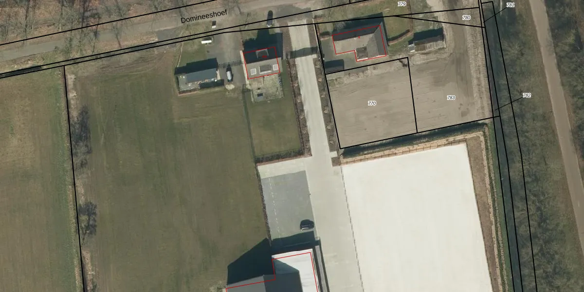 Het perceel waarop Domineeshoef 4-B-3 staat heeft een oppervlakte van 3,3 ha. Dit is een zeer groot perceel. De perceeloppervlakte wordt geregistreerd door het Kadaster. Gedetailleerde informatie over de maten van dit perceel kunt u vinden in het rapport Kadastrale kaart met maatvoering van Domineeshoef 4-B-3.