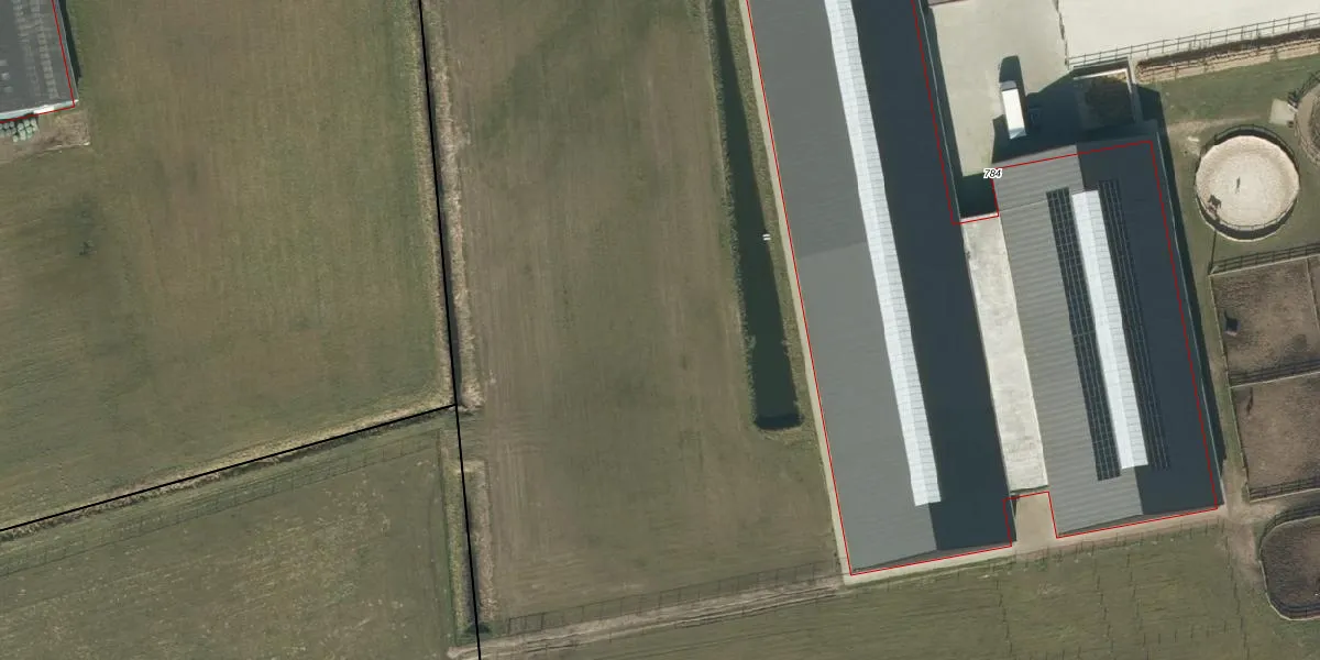 Het adres is gelegen op perceel 784 in de sectie H en de kadastrale gemeente Schaijk. De kadastrale aanduiding is aldus SCH03-H-784. De oppervlakte van het perceel is 3,3 ha. Dat is groter dan gemiddeld in Schaijk, waar de gemiddelde perceeloppervlakte op 5968,64 m² ligt. De grootste perceeloppervlakte in de kadastrale gemeente is 1,17 km². De kleinste oppervlakte bedraagt 0 m². Er zijn 24 adressen aanwezig op het perceel. De huidige grenzen van het perceel zijn digitaal in de Basisregistratie Kadaster (BRK) geregistreerd op 18-07-2017.