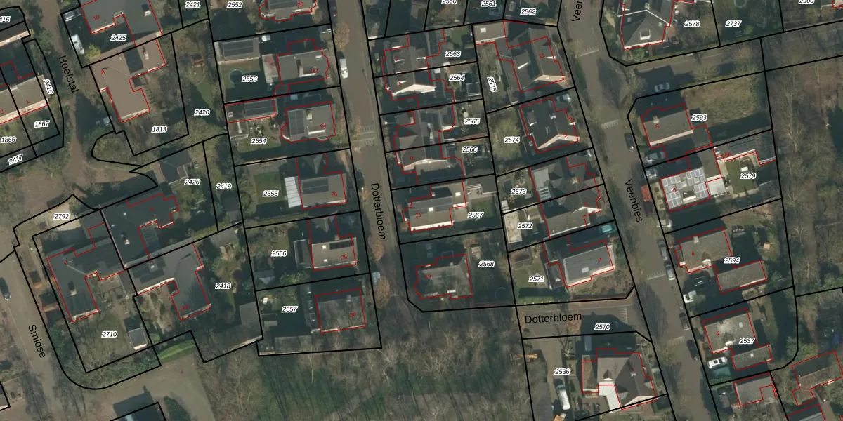 Gebruik de zoekbalk of klik op een perceel voor informatie over de adressen binnen dit perceel.
