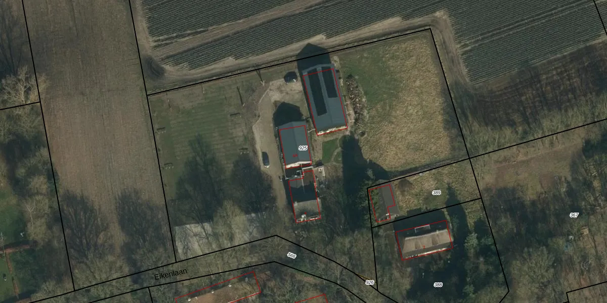 Het perceel waarop Eikenlaan 4-A staat heeft een oppervlakte van 5496 m². Dit is een zeer groot perceel. De perceeloppervlakte wordt geregistreerd door het Kadaster. Gedetailleerde informatie over de maten van dit perceel kunt u vinden in het rapport Kadastrale kaart met maatvoering van Eikenlaan 4-A.