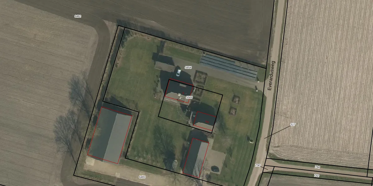 Everardusweg 6 is gelegen op kadastraal perceel SCH03C5569. Deze kadastrale aanduiding is uniek en wordt gebruikt door het Kadaster om eigendomsrechten en andere zakelijke rechten vast te leggen. Het perceel maakt onderdeel uit van de kadastrale gemeente Schaijk.