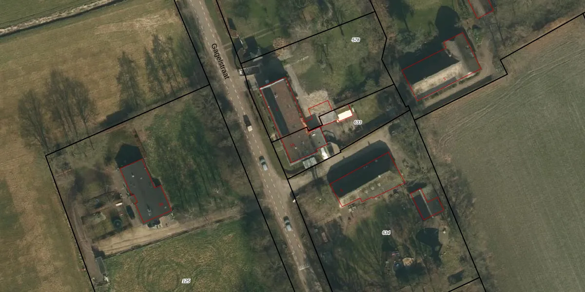 Het perceel waarop Gagelstraat 1-a staat heeft een oppervlakte van 608 m². Dit is een groot perceel. De perceeloppervlakte wordt geregistreerd door het Kadaster. Gedetailleerde informatie over de maten van dit perceel kunt u vinden in het rapport Kadastrale kaart met maatvoering van Gagelstraat 1-a.